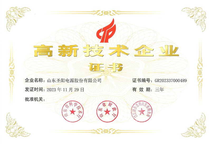 近日,经山东省科学技术厅、山东省财政厅、税务总局山东省税务局三部门联合认定,经全国高新技术企业认定管理工作领导小组办公室核准,圣阳股份再获高新技术企业称号(证书编号GR202337000489)。圣阳股份自2008年次获得高新技术企业,截止2023年已连续第6次通过认定。